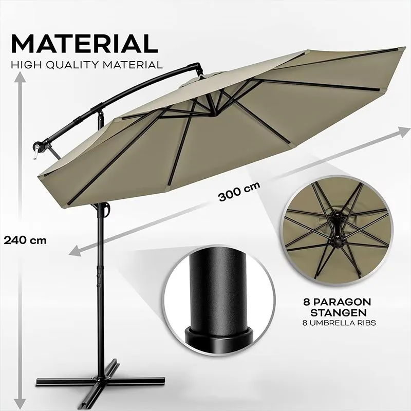 Varat izvēlēties no dažādām krāsām, piemēram, zaļa, sarkana, zila, bēša, pelēka vai melna, vai arī varat izvēlēties pielāgotu krāsu, kas atbilst jūsu stilam. Neatkarīgi no tā, vai jūs saskaraties ar kvēlojošu vasaras sauli vai vēsu pavasara pēcpusdienu, Cantilever Saulessargs nodrošina lielisku āra pieredzi.